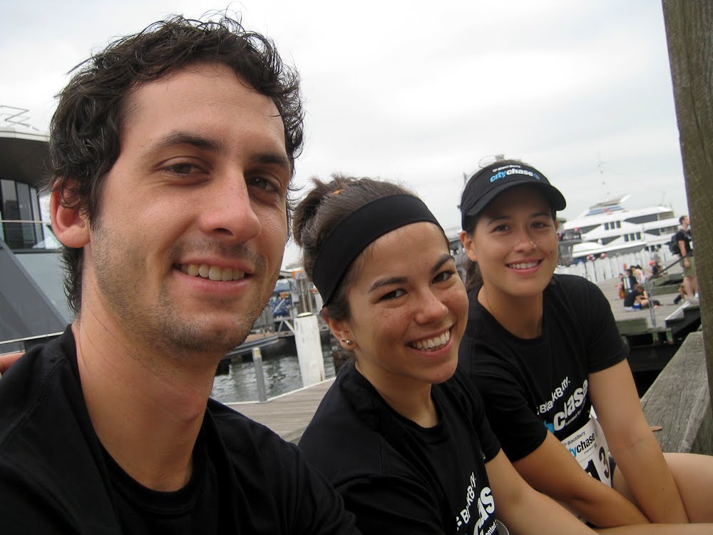 It's that time of year again, City Chase time. This is our second year in a row doing this great event. It is part scavenger hunt, part figuring out puzzles, part doing challenges and a race to boot. This year we read the rules and greatly improved our overall finish. We came in 45th out of some 280 or so teams. We finished the event in a little over four hours. This year was very tough partially due to the higher temperature and humidity and mostly due to the longer course which involved more running. As you can tell we were quite sweaty and tired by the end. Kt did manage to find time to pose with what looked like a giant tooth with plaque. Can you tell that Blackberry was the event sponsor? Those girls in red at least won the best costume award and $250 each, I guess that's the price of dignity. We managed to get a bit dirty and a bit wet from our swim. We did take in some of the sights around the harbour, and even got a ride on some neat Navy boats, including the fast and fun inflatable one that Kt is posing next to. The random guy let us dress him in skins and take his photo as part of one of the challenges. Then there is proof that it is not easy to take a hold out photo when running. Finally after the finish we enjoy some tasty snacks and beverages of an adult nature.