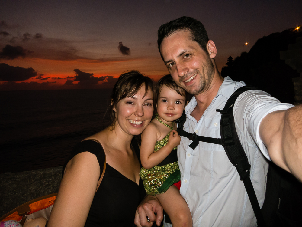 In the evening we went to Ulawatu Temple because TV wanted to photograph the sunset and see monkeys and fire dancers. At first things were going quite well with monkeys and people respecting their distance, but then things took a bit of a turn. TV cut off KT's head in photographs, and then things just went downhill. One of the monkeys stole SV's bunny from TV's backpack and then ran away with it. Then he started tearing into it in the bushes hoping to get a treat. After that minor victory the monkeys got bolder and nastier, trying to get food from us.
