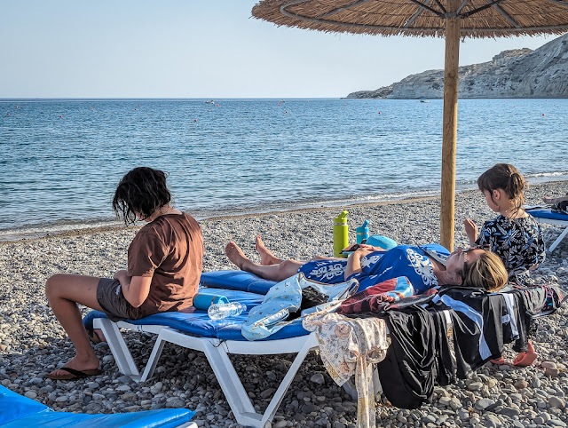It was hard to believe that this was the last evening we had at Pissouri before we had to move on. We really enjoyed our stay here, especially having the beach so close. We all went for one more swim in the sea and to collect a few cool rocks. We warmed up on the lounge chairs and really had a chance to unwind. Afterwards we casually walked up to one of the restaurants and had a dinner overlooking the sea which was framed by ripening grapes.